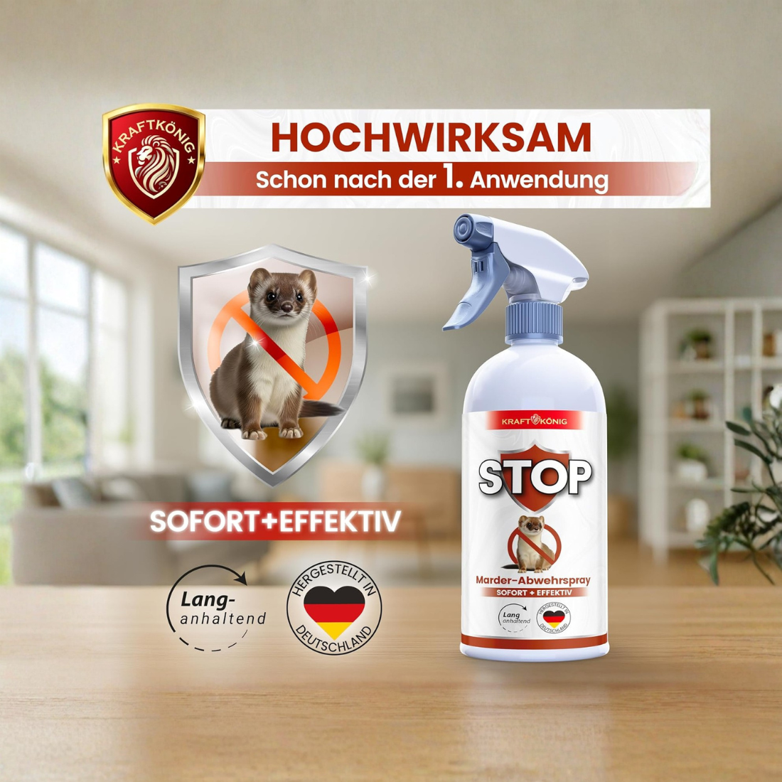 Die Formel enthält intensive Duftstoffe, die Marder sofort abschrecken – ideal für Auto, Garage & Dachboden.