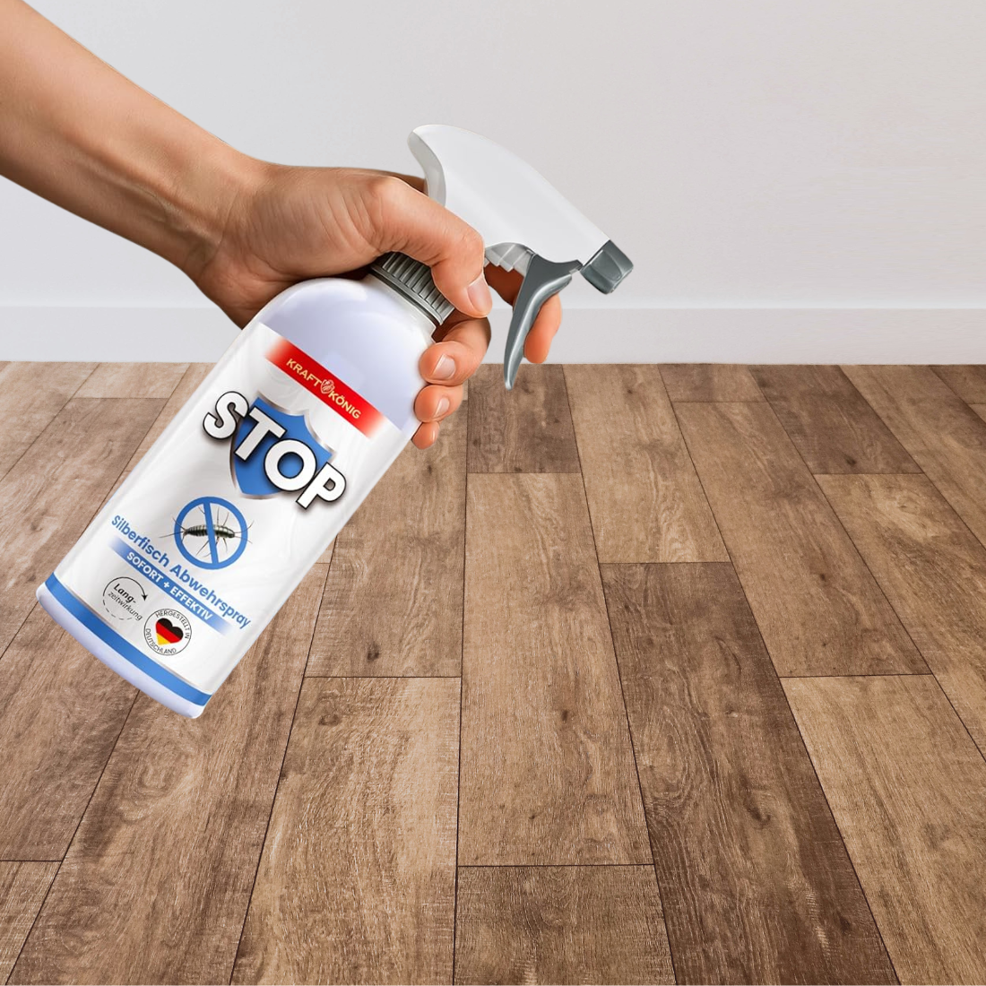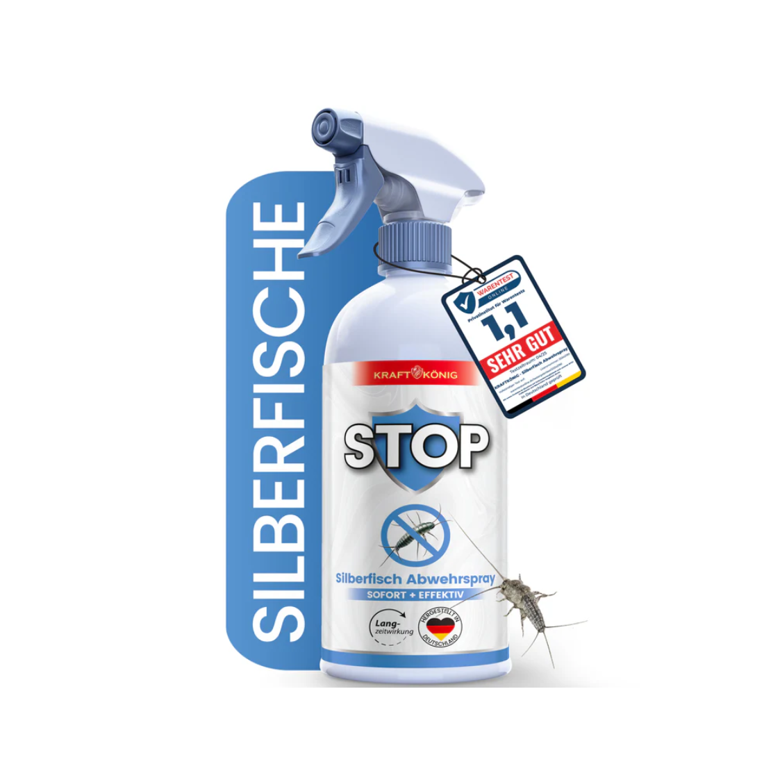 Silberfische gehören zu den häufigsten Schädlingen im Haushalt. Die kleinen, lichtscheuen Insekten lieben warme, feuchte Orte wie Badezimmer, Küchen oder Waschräume und werden besonders nachts aktiv. Mit dem KRAFTKÖNIG Silberfischspray bekommst du ein zuverlässiges Mittel gegen dieses Ungeziefer an die Hand, das die Tiere sofort vertreibt und nachhaltig fernhält.