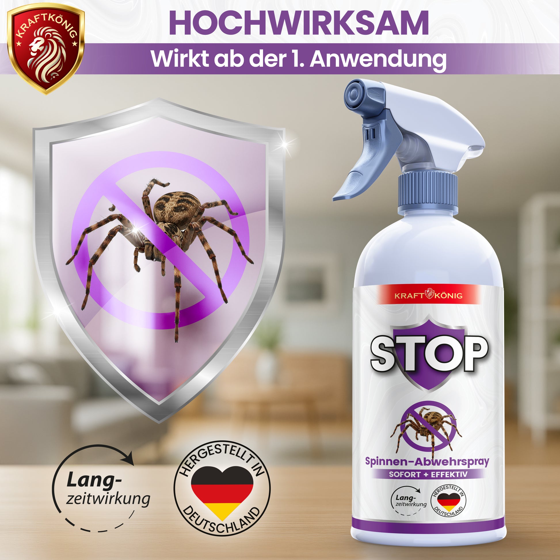 Viele Menschen fühlen sich unwohl, wenn Spinnen in Wohnräumen auftauchen. Besonders im Spätsommer und Herbst suchen sie warme, geschützte Bereiche – oft ausgerechnet in deinem Zuhause. Mit dem KRAFTKÖNIG Spinnenspray vertreibst du Spinnen zuverlässig, ohne ihnen zu schaden, und schützt deine Räume langfristig vor neuen Eindringlingen.